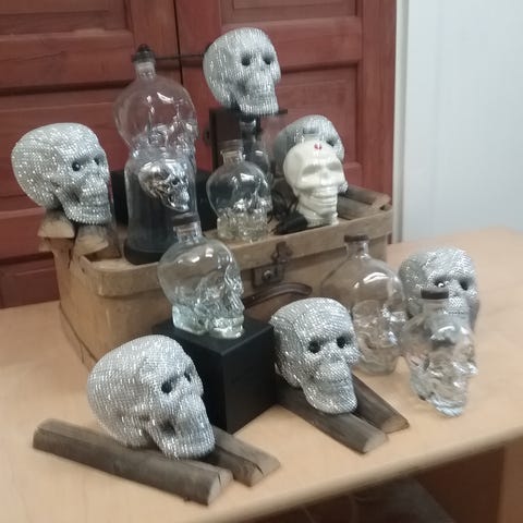 2 lasista pääkallokippoa tuikkukipoksi tai miksei vaikka kahvitteluun.Postitus tai haku