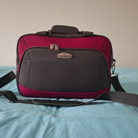 Samsonite olkalaukku naisille. Materiaalina kangas, värinä punainen. Laukussa on säädettävä olkahihna ja vetoketjulla suljettava päälokero. Edessä on vetoketjutasku ja takana avotasku. Sisäpuolella on vuori sekä useita pienempiä taskuja pienten tavaroiden, kuten puhelimen, lompakon ja avainten säilyttämiseen.