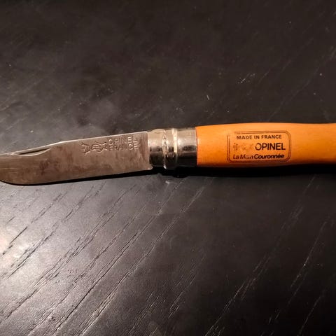 Kuvissa näkyvä kääntöveitsi, Opinel. Jos ilmoitusta ei ole poistettu, on tuote edelleen myytävänä. Kunto selviää kuvista. Kysy tarvittaessa lisää tori-viestillä! Postitus onnistuu.