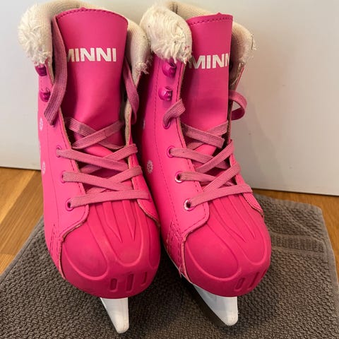 Minni tyttöjen harjoitusluistimet, koko 31. Väri pinkki, sivuilla lumihiutalekuvioita. Nauhakiinnitys ja nilkan ympärillä pehmeä, vaaleakarvainen reunus. Teräosa on suunniteltu lasten harjoitteluun ja tasapainon tukemiseen. Soveltuu lapsille, jotka opettelevat luistelemaan tai käyttävät luistimia satunnaiseen luisteluun.