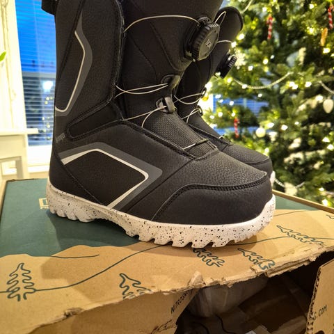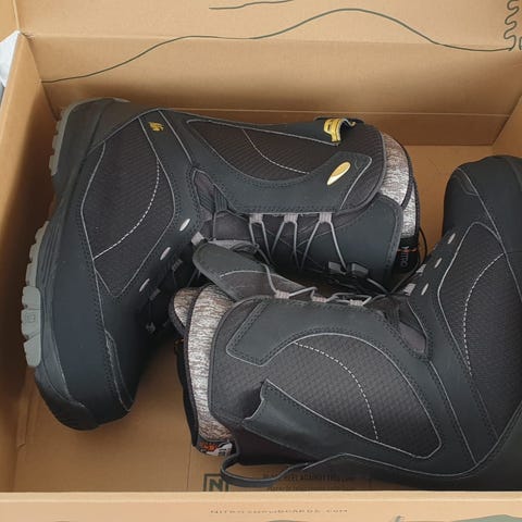 Yhden kauden lasketut Nitro florat tls kiinnityksellä. Jäykkyys 4. Hyvä peruskenkä. Napakka mitoitus, oli itselle liian pienet.