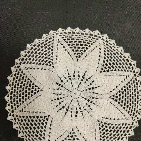 Kaunis käsin virkattu pitsi liina se on hienoa käsityötä ja siinä on kaunis malli. Lanka on hienoa puuvillaa