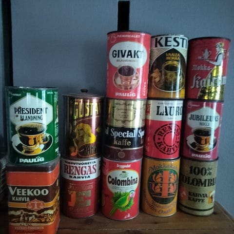 Hyväkuntoiset peltipurkit 70-luvulta. Ruusukuviolla.
