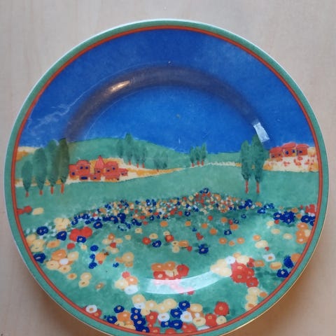Villeroy & Boch muki, valkoista posliinia. Reunoissa sininen raita ja kyljissä värillinen maisemakuvio, jossa käveleviä ja leikkiviä hahmoja veden äärellä. Sopii kuumille juomille, kuten kahville, teelle tai kaakaolle. Myydään kuvien mukaisena settinä, jossa kaksi saman sarjan mukia.