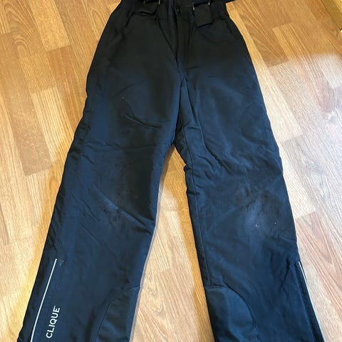 Lumicamo toppakki 140 ja valkoiset housut 128