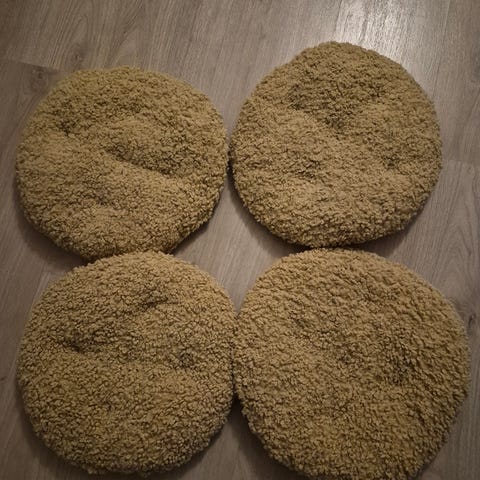 Myydään 4 kpl raidallisia istuintyynyjä ja 2 kpl pinkkejä istuintyynyjä. Yhteensä kaikki 5 euroa.