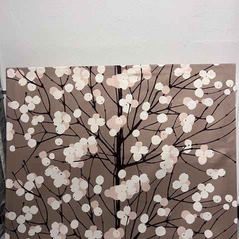 Myydään Marimekon Lumimarja kankaasta tehty taulu.