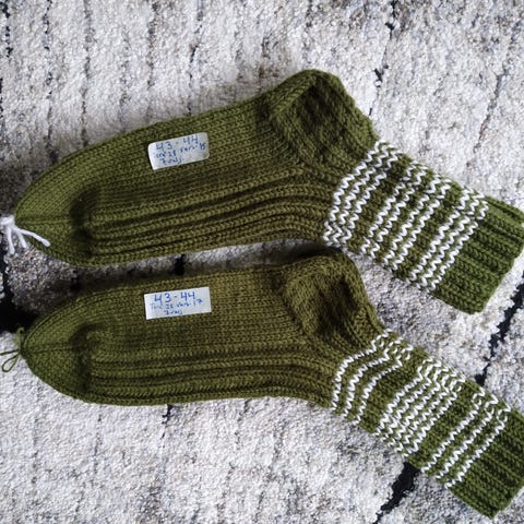 Käsintehdyt villasukat 7 veljes lanka. Ihanan pehmeät ja lämpöiset esim. Itsellä tai kiva lahjaidea. Teen tilauksesta myös samanlaisia sukkia, joissa eri kokoja ja värejä eli voit kysyä myös niistä.