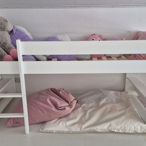 Valkoinen Nukkumatin parvisänky 200x120cm.