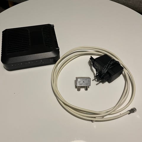 Sisältää modeemin, virralähteen, 3x puhelinpistokkeita, 2x puhelinkaapeleita