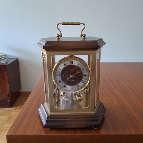 Myydään toimiva, saksalainen Hermle-merkkinen pöytäkello / kupukello. Korkeus n.23cm. Kaiverrus laatassa. Nouto.
