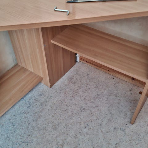 Myydään käytetty tietokonepöytä,valkoinen,tilava.Yläosan saa helposti irti.
