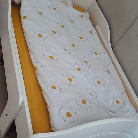 Metallinen valkoinen lastensänky säleikköpohjalla