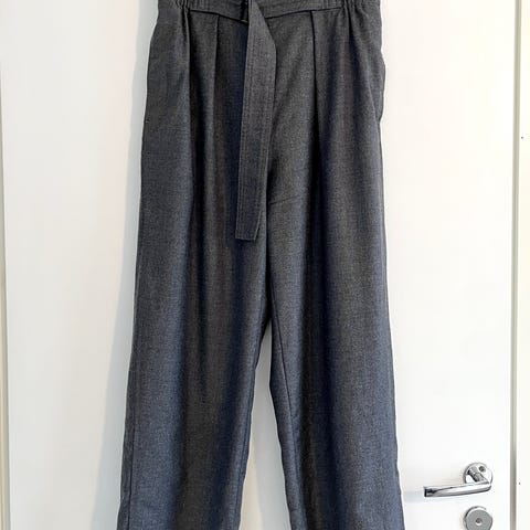 Hyväkuntoiset housut, lahkeen puolikas leveys 25 cm. Yksityiskohtainen keskileikkaus vyötäröllä, kaksi vinoa taskua edessä ja yksi läppällinen jet-tasku takana. Ovh noin 120 e.