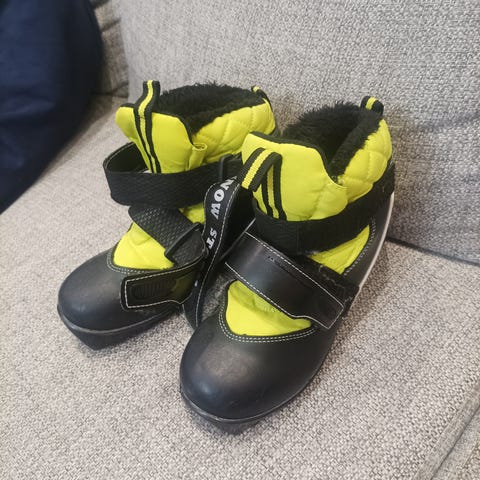 Fischer hiihtomonot NNN-siteille. Väritys musta–harmaa, sisäpuolella keltainen vuori. Monoissa on vetoketjullinen päällinen ja kumipohja, joka on yhteensopiva NNN-tyyppisten siteiden kanssa. Soveltuvat perinteiseen maastohiihtoon. Koko 34