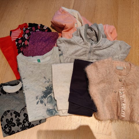 Myydään tyttöjen vaatepaketti, koko 122/128 cm. Sisältää kolmet collegehousut, yhdet kesätrikoot, kolme pitkähihaista, kaksi t-paitaa, kolme t-paitatunikaa, pörröhuppari ja -housut, jumppapuku ja villaiset sukkahousut.