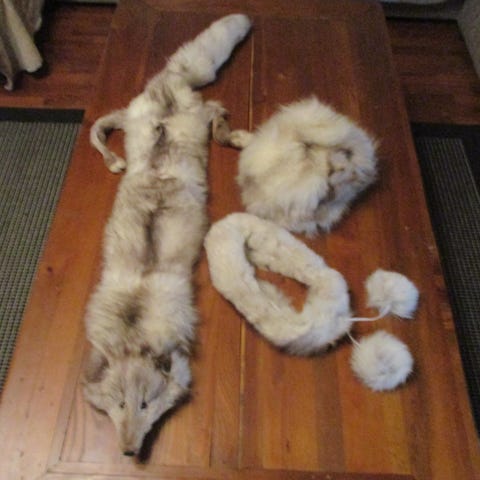 Naisten vaalea turkispuuhka / turkiskaulus. Vaaleakarvainen kotimainen kettu, valmistettu kauluspuuhkaksi, kiinnitysnipistin leuan alla. Materiaalina aito turkis. Pituus kuonosta hännänpäähän 115 cm. Ketun pituus 78 cm. Ketulla tekosilmät. Karva on ihanan pehmeää ja puuhka on lämmin. Turkis on tuoksuton ja ollut vain yhdellä omistajalla, lähes käyttämätön. Uuden veroinen.