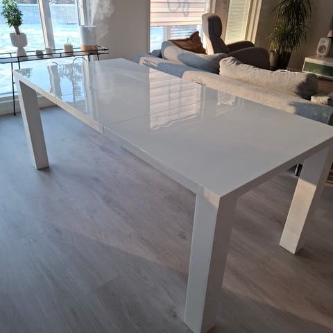 Hyvässä kunnossa oleva Ikean mustanruskea Bjursta jatkettava ruokapöytä.