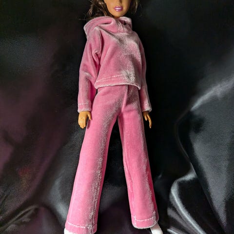 Valkoinen-beige huppari ja housut, päällevedettävät.