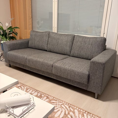 - Isompi sohva (3-istuttava): leveys 210 cm / Hinta 250 €