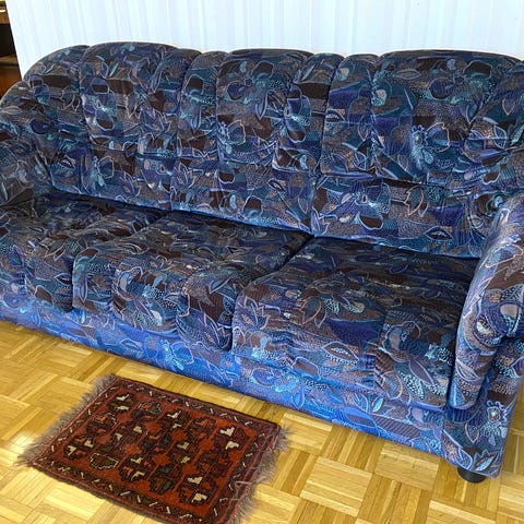 Kolmen istuttava vuodesohva, joka on nopea ja helppo levittää vuoteeksi. Selkänoja on säädettävissä mukavaan lepoasentoon. Sohvassa on tukeva puurunko ja kiinteä kangasverhoilu. Jalat metallia.