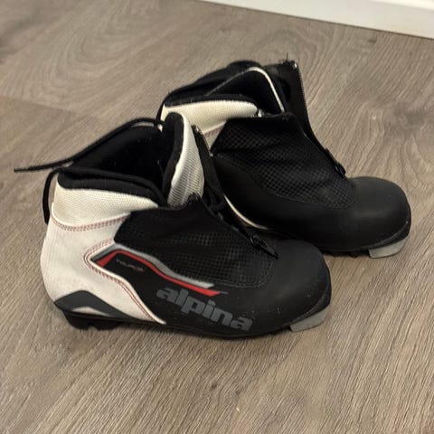 Alpina lasten hiihtomonot, koko 27. Väri musta punaisilla yksityiskohdilla. Nauhakiinnitys ja päällä vetoketjullinen suojaläppä. Päällinen synteettistä materiaalia, vuori tekstiiliä ja pohja kumia. Soveltuvat lasten maastohiihtoon NNN-siteisiin yhteensopivalla pohjalla (pohjassa kaksi rinnakkaista uraa). Sitä on käytetty hyvin vähän. Vain nouto.