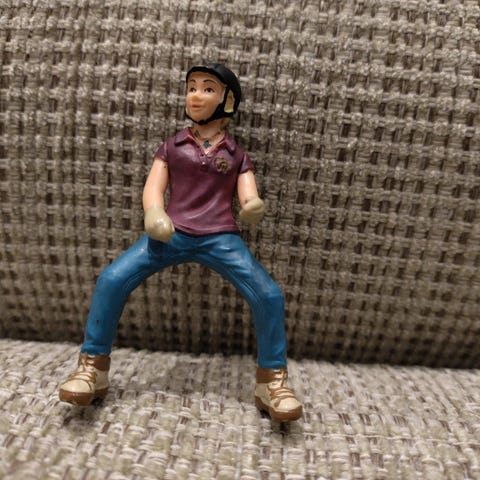 Myydään hyväkuntoinen ratsastaja Roosa. Hieman kulumaa käsissä, hatun lipassa ja kengän pohjissa. Nouto tai posti. Yhdistelen posteja.