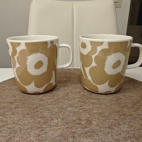 Vähän aikaa käytössä olleet ruskeat unikko mukit 4dl
