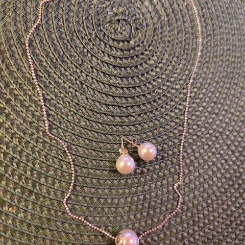 Leimat löytyy, 925 hopeaa kaulaketju sekä korvakorut. Helmistä en tiedä.