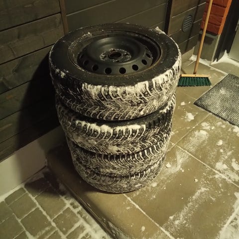 Siitä vielä käypäsiä nastarenkaita joissa nastat hyvin tallella. Renkaita vain kolme kappaletta, mutta kaksi ovat samoja ja yksi isompi. Renkaissa silmämääräsesti noin 4-5mm pintaa eli toimii vielä. Vain nouto! Hintaa saa tarjota, mutta ei ole kalliit tähänkään hintaan. Koot näkyvät kuvista.
