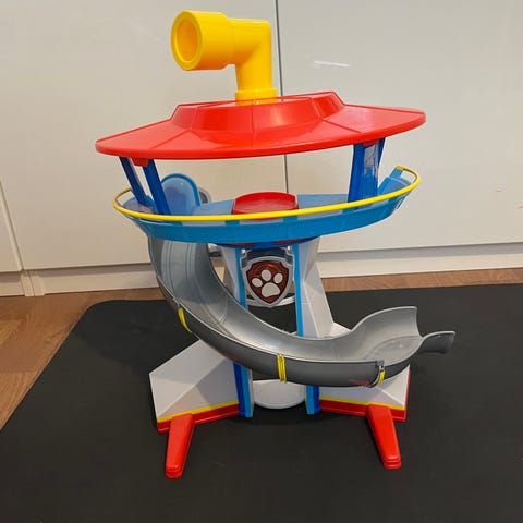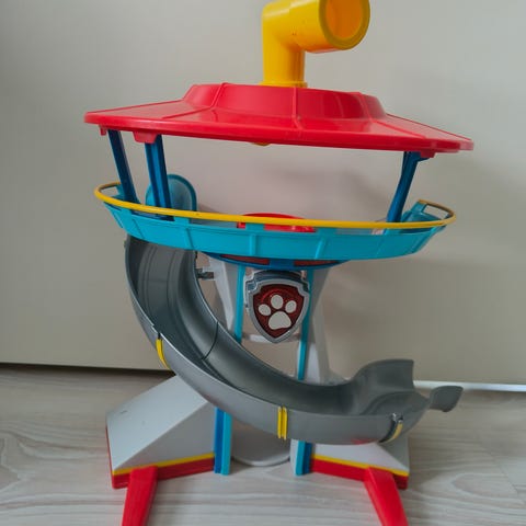 Ryhmä Hau vahtitorni. Ok kunto muuten, paitsi yksi muovikannake haljennut. Liukumäki kuitenkin liimattu pikaliimalla kannakkeeseen ja kestänyt leikit erinomaisesti. Ei siis vaikuta käyttöön!
