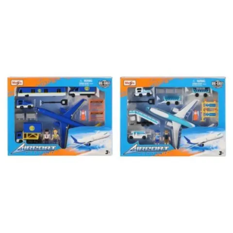 Lentokenttä leikkisetti lapsille. Setissä on muovinen terminaalirakennus, lennonjohto- tai valvontatorni, ajoluiska sekä kiitotie- ja rullaustiealueet. Leikkialueessa on maalatut kiitotienumerot, ajokaistat ja parkkialueet. Sopii pienille leluajoneuvoille ja lentokoneille mielikuvitusleikkeihin sisätiloissa.