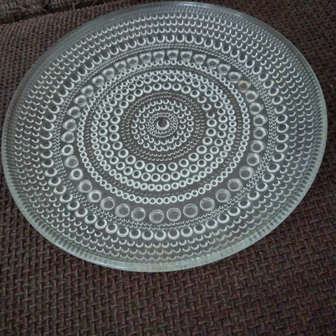 Myydään Kastehelmen 24cm tarjoilulautanen. Lautasessa on käytön jälkiä, jotka näkyvät kuvissa. Eivät kuitenkaan haittaa käyttöä, ei näy jos katsoo kauempaa.