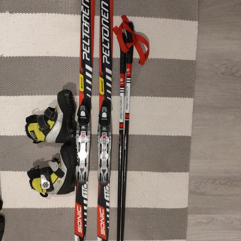 Peltonen Sonic lasten perinteisen hiihtotyylin sukset ja sauvat. Suksissa on pitopohja, joka helpottaa perinteisen hiihdon pitoa ilman voitelua. Mukana tulevat yhteensopivat sauvat sekä suksien siteisiin kuuluvat remmit. Sukset 110cm.