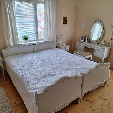Myydään upea rustiikkinen, vintage-henkinen makuuhuonekalustosetti muuton vuoksi. Kalusteet on ostettu uutena noin 3 vuotta sitten, niitä on pidetty erittäin hyvin, ja ne ovat erinomaisessa kunnossa. Alkuperäinen hankintahinta oli noin 2800€.