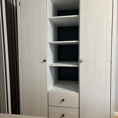 Puinen vaatekaappi ulosvedettävissä laatikoissa maalaistaloon.Tarjous