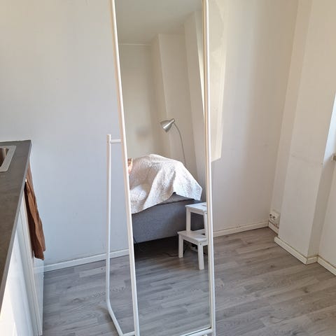 Puinen Ikea kokovartalopeili. Malli Ikorness. Sävytetty tummemmaksi puuöljyllä.