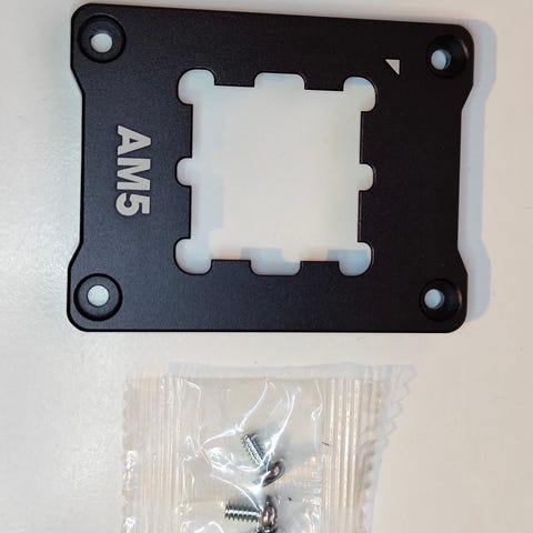AM4 emolevylle metallinen backplate ja jäähdyttimen kiinnityspalat, sisältää ruuvit. Muistaakseni jäi MSI:n X470 emolevystä pyörimään ATK-laatikon pohjalle..