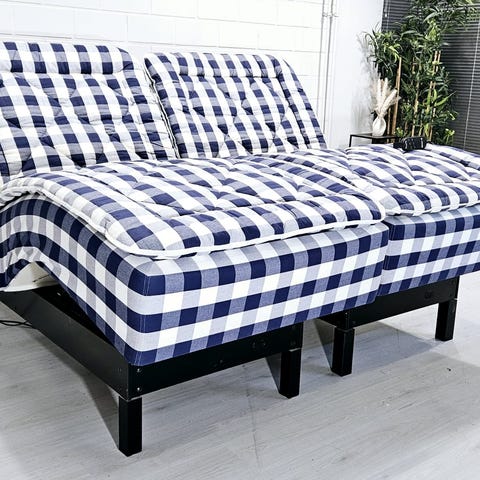 Hästens moottorisänky, jossa kaksi erillistä runkosänkyä ja erikseen säädettävät pää- ja jalkopäät. Sängyissä on vihreä-valkoruudullinen verhoilu ja paksut patjat. Sähköinen säätö tapahtuu johdollisilla kaukosäätimillä. Sopii kahdelle parisängyksi tai erillisinä sänkyinä,. Tarjoaa mahdollisuuden säätää makuuasentoa esimerkiksi lukemista tai lepäämistä varten. Joustinpajoissa on luonnomateriaalia puuvilla, villaa ja hevosen jouhia.