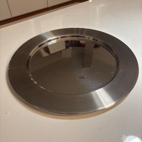 Sarpanevan suunnittelema teräslautanen, alkuperäinen pakkaus halkaisija 32cm