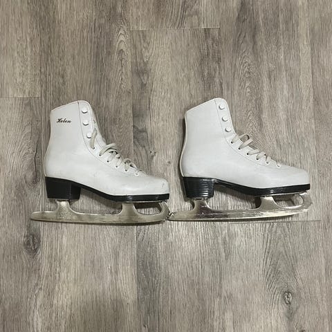Lasten luistimet, koko 33. Väri valkoinen. Perinteinen nauhakiinnitys ja nilkkaa tukeva varsi. Soveltuvat yleiseen luisteluun ja harrastekäyttöön jäällä.