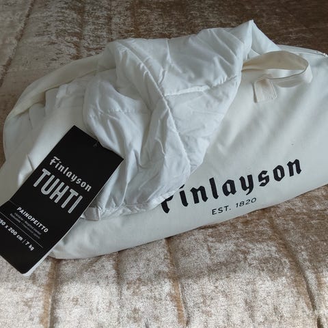 Tummanharmaa painopeitto koossa 100x150, yhdellä lapsella ollut käytössä.