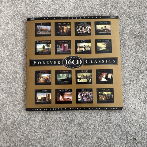 47 cd-levyä. 4 telinettä levyille. Jokaisen levyn mukana vihkonen jossa tietoa säveltäjästä. Hakemisto -vihko myös mukaan sekä kovakantinen kirja. Kaikki kannet sekä cd-levyt uudenveroisessa kunnossa. Postikulut ostajalle tai nouto Tikkakoskelta.