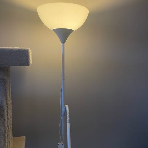 Myydään käyttämätön harmaa lattiavalaisin. (Kuvassa valmiiksi kasattu on minun toinen samanlainen. Myynnissä oleva lamppu on kuitenkin käyttämätön ja pakkauksessa vielä!)