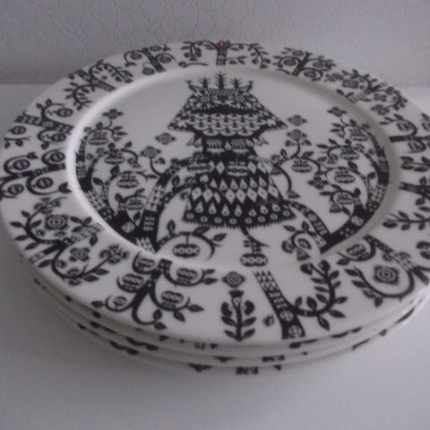 Myydään 3kpl 22cm mustavalkoisia Iittalan Taika lautasia ja 2kpl 0,6L kulhoja.