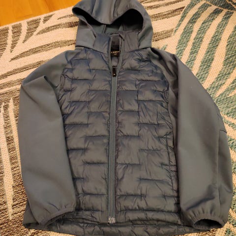 Everest kuoritakki, koko 134/140. Ehjä, ei ollenkaan kulumaa, yhdellä lapsella käytetty. Etupuolella ja hihoissa arasta väristä johtuen tahraa kts kuvat. Selkäpuoli siisti.