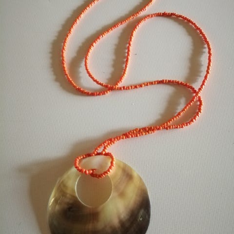 Wire wrapping tekniikalla tehty riipus kuparilangasta, simpukan kuoresta ja lasihelmestä. Kaulakoru on uusi, käsityönä valmistettu. En voi lähettää toridiilillä. Ostajalle postit. Kulkeutuu kirjeenä. Useamman tuotteen ostaja saa pakettialennuksen.