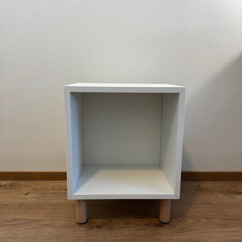 IKEA EKET pieni valkoinen kaappi, jonka päälle saa EKET puunvärisen kuution. Molemmat ovat hyvässä kunnossa, kuutioon on porattu takaseinään reikä.