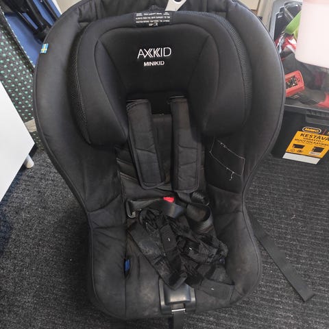Axkid Rekid turvaistuin, enimmäispaino 25 kg. Väri musta. Istuimessa on viisipisteturvavyöt ja säädettävä niskatuki. Sopii käytettäväksi autossa lapsille noin 9–25 kg painoluokassa, selkä menosuuntaan asennettuna. Istuimessa on tukijalka ja kiinnityshihnat auton runkoon kiinnittämistä varten. Pehmustetut sivutuet ja istuinosa lisäävät istuinmukavuutta lapselle.