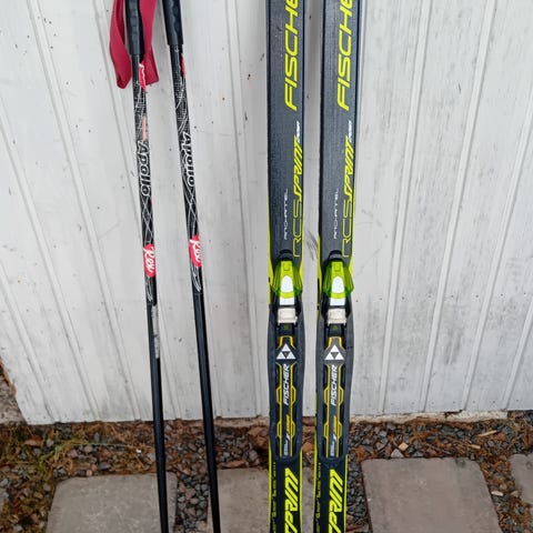 Lasten 120cm fischer sukset ja 95cm sauvat.